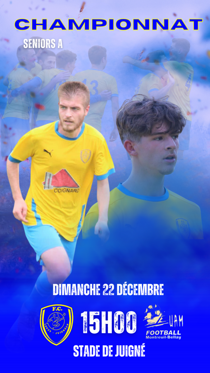 Match à 15H00 contre Montreuil Bellay au stade des Garennes